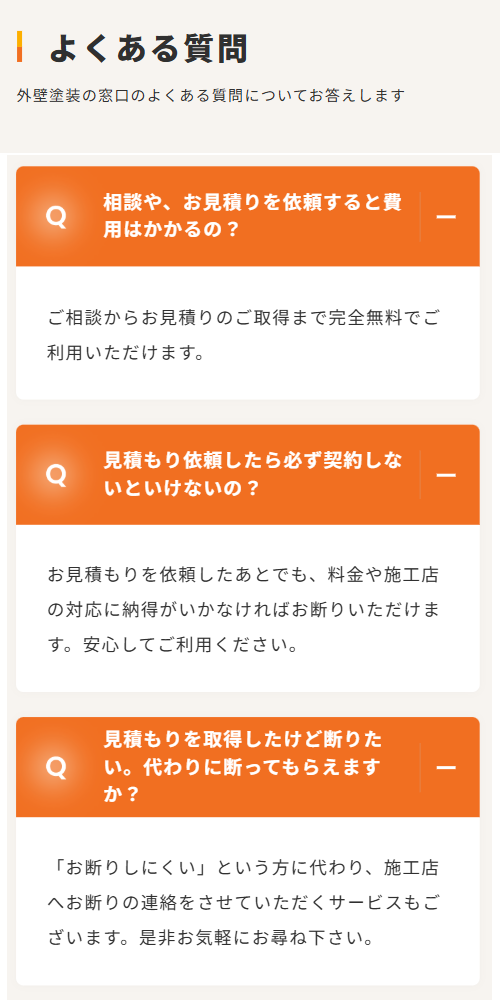 施工会社さんを選定すれば、他の施工会社さんへの気が引けるお断りも代わりに行なってくれて気の利いたサービスも良かったです。